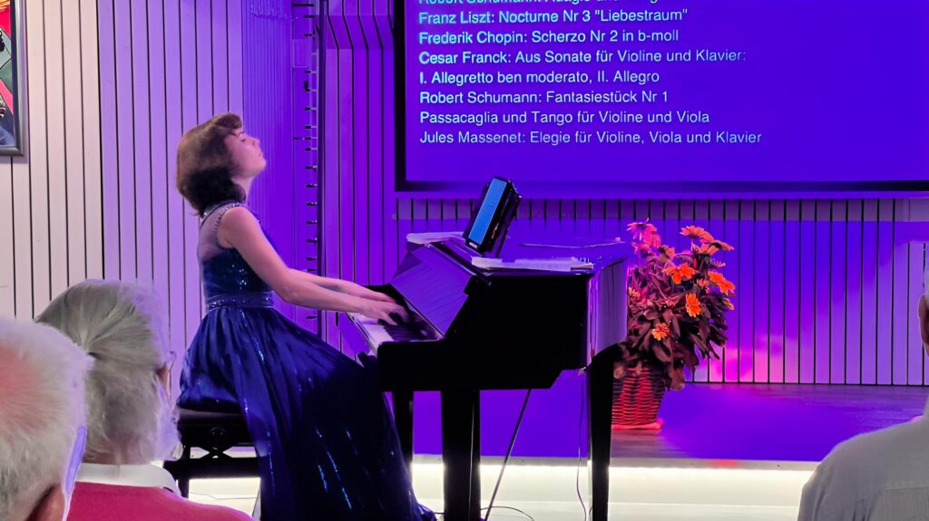 Weiter ging es mit Robert Schumanns „Adagio und Allegro für Viola und Klavier“ – und dann: die erste grosse Bewährungsprobe für den Yamaha Grantouch GT1, ein hochwertiger Digitalflügel mit einer echten Klaviermechanik und der Klangwelt eines ausgewachsenen Konzertflügels! Yulia entlockte ihm Franz Liszts berühmten Liebestraum und Frédéric Chopins Scherzo Nr.2. Es sei erstaunlich, was dieses Ding hergebe, meinte ein Zuhörer beim sich anschliessenden, tosenden Applaus. Tatsächlich hatte die Pianistin tolle Klänge bis ins Fortissimo aus den Tasten hervorzuzaubern gewusst.