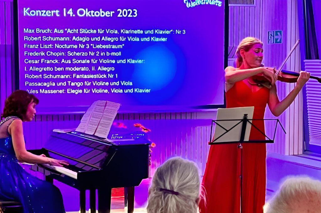 Nun wurde es wieder kammermusikalisch mit César Franks leidenschaftlichen Sonate für Violine und Klavier, woraus zwei Sätze dargeboten wurden, gefolgt von Schumanns intimem Fantasiestück Nr. 1 (Viola und Klavier). Der nachfolgende norwegische Komponist, Johan Halvorsen, wohl eher unbekannt, wurde durch seine sehr reizvolle Passacaglia vertreten, virtuos gespielt von Tanja und Ribal – daran knüpfte sich musikalisch nahtlos ein bekannter Tango („Man könne ja auch dazu tanzen“, meinte Tanja scherzhaft dazu – geistig tanzten die Zuhörer sicher mit!).