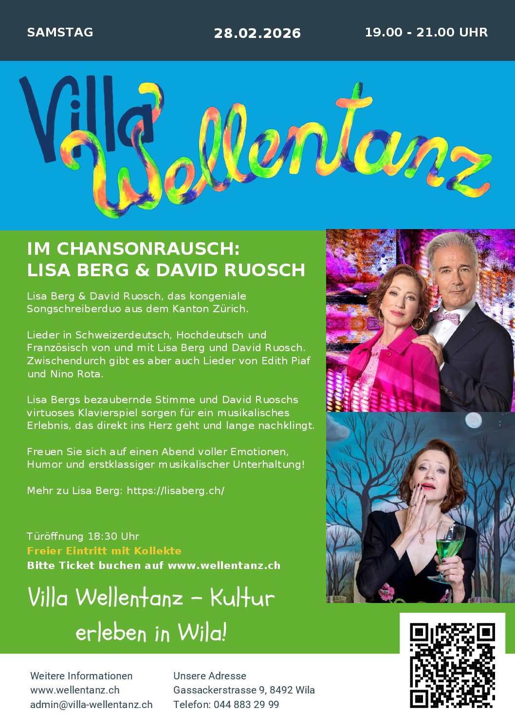 Lieder in Schweizerdeutsch, Hochdeutsch und Französisch von und mit Lisa Berg und David Ruosch. Zwischendurch gibt es aber auch Lieder von Edith Piaf und Nino Rota.